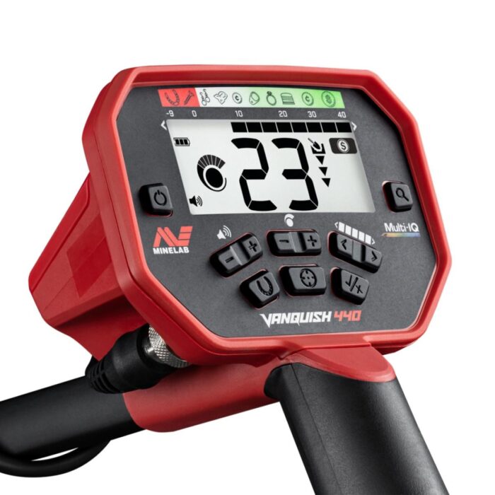 Highly versatile and waterproof, the VANQUISH 440 comes with Minelab’s V10 10”x7” Double-D coil as standard.
